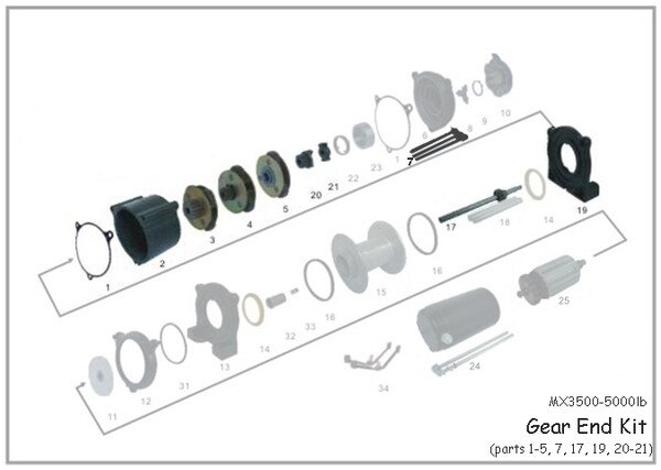 Max 3500-5000 Standard Spool Winch Gear End Kit (1-5,7,17,19-21)
